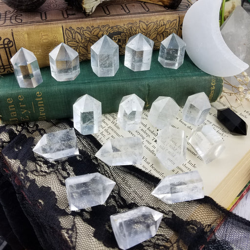 Our clear Quartz points are hand cut and polished from all natural Quartz. Because they are hand cut and polished, each point is a little different...