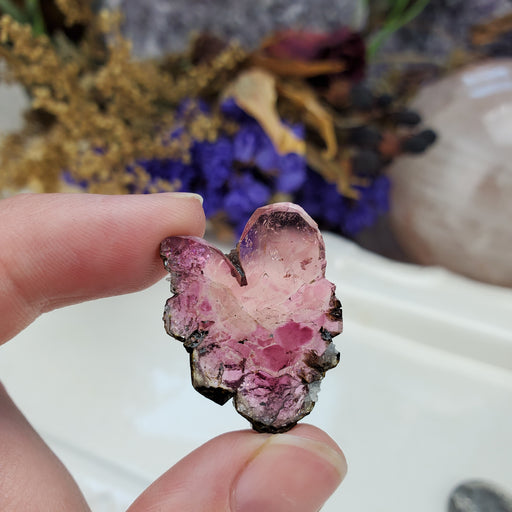 This colorful pair of of Tourmaline slices make the perfect pair of earthy, organic, butterfly wings! Our Tourmaline Butterfly Wings are approxima...