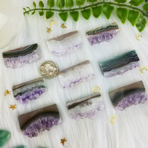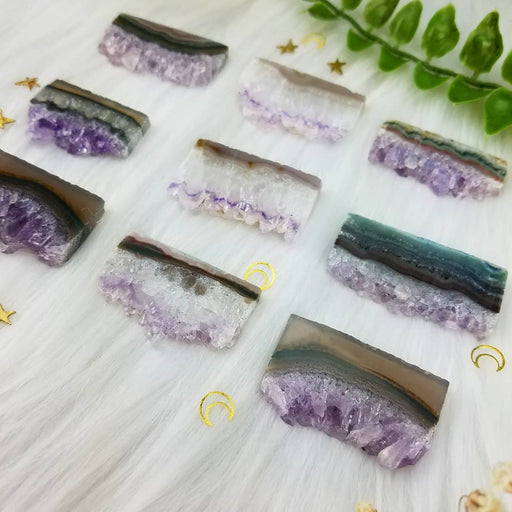 Our Amethyst and/or Quartz with Agate Long Slices are hand cut and polished from all natural Uruguay Amethyst, Quartz, and Agate. These Amethyst an...