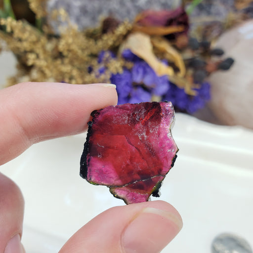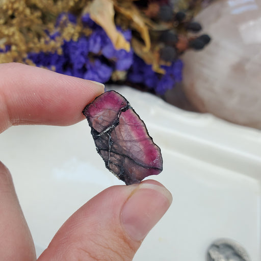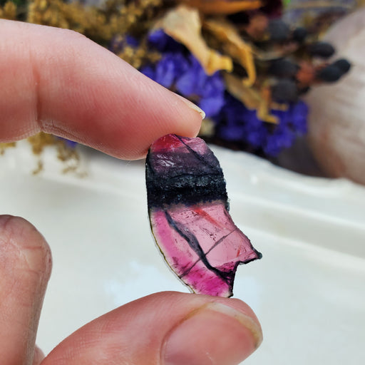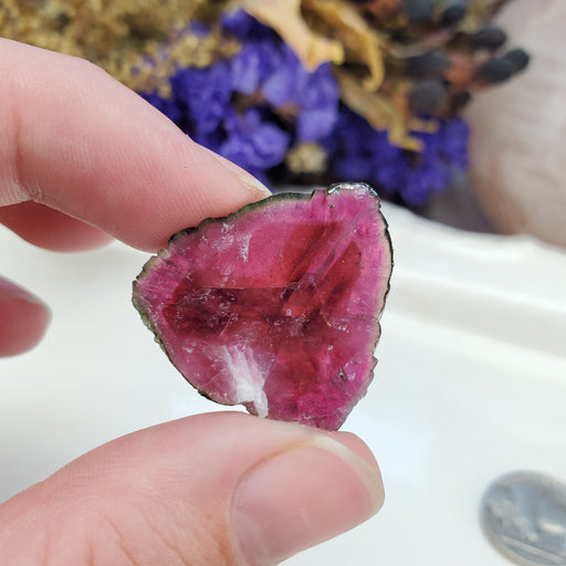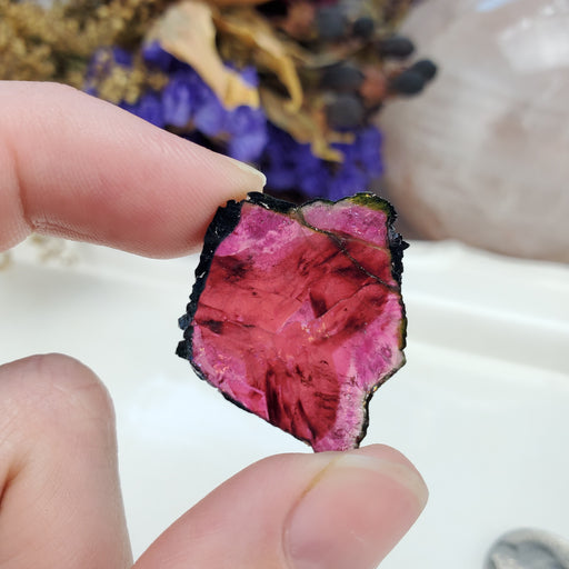 This Tourmaline Slice is approximately 3/4'' long and 3/4" wide. Click here to see all Tourmaline
