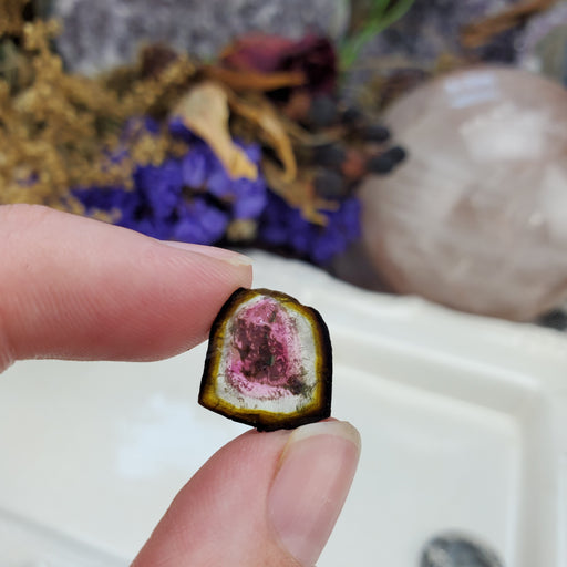 This Tourmaline Slice is approximately 1/2'' long and 1/2" wide. Click here to see all Tourmaline
