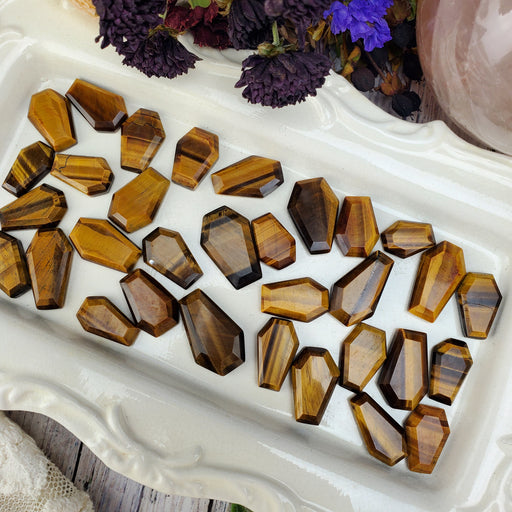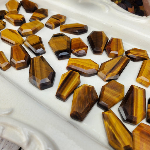 Our Tigers Eye Coffins are hand cut and polished from all natural Tigers Eye. These Tigers Eye Coffins are sold as randomly selected single pieces....