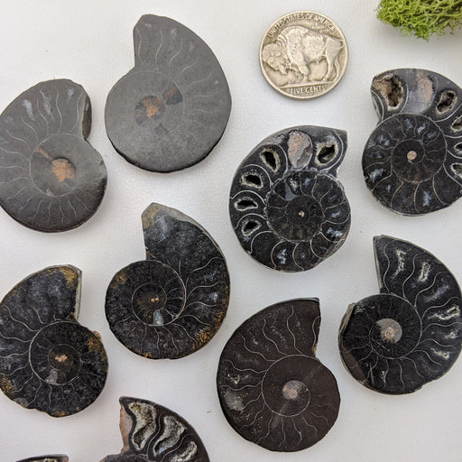 Our Black Ammonite sets are hand cut and polished from all natural Madagascar Black Fossilized Ammonites. These Black Sliced Madagascar Ammonite Se...