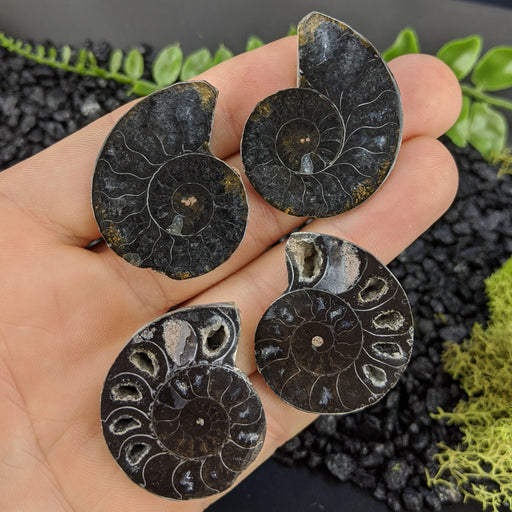 These gorgeous Ammonite Splits have well defined sutures, crystal pockets, and color! These are the perfect size for rings! Our Ammonite Splits are...