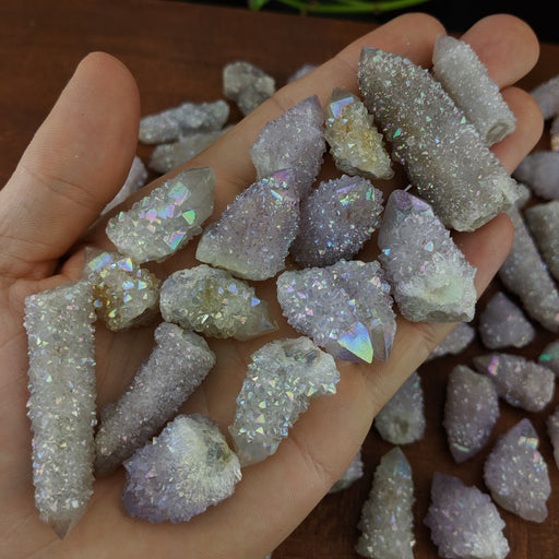 Our Spirit/Cactus Quartz Points with Aura Coating are all natural South African Spirit/Cactus Quartz Points bonded with Titanium to give them their...
