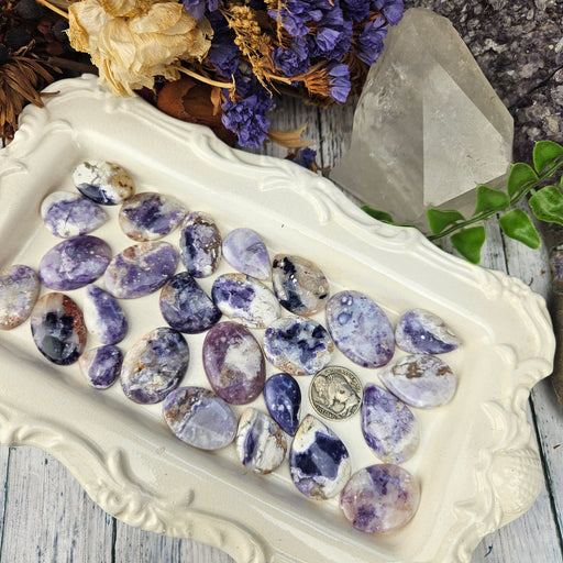These Tiffany Jasper Cabochons are gorgeous shades of lavender that deepen to stunning violet. Our Tiffany Jasper Cabochons are sold as randomly s...