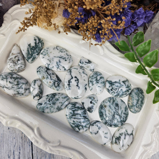Our Tree Agate Cabochons display beautiful, dark green, mossy patterns. Our Tree Agate Cabochons are sold as randomly selected single pieces. They ...