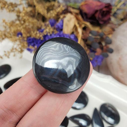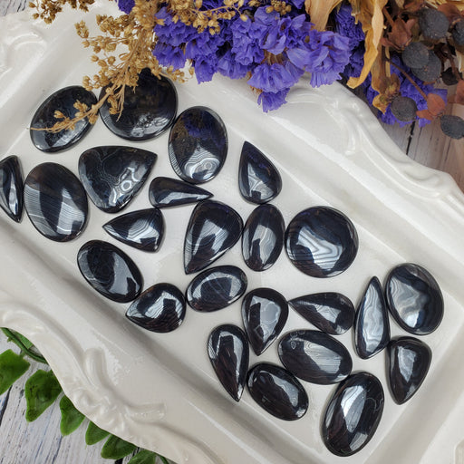 Psilomelane is a unique stone with gentle rolling bands of black and silver, melting together much like oil on water. Our Psilomelane Cabochons ar...