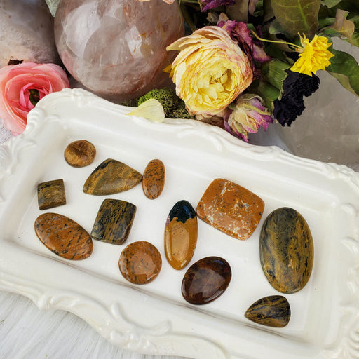 Our Golden Sheen Obsidian Cabochons are hand cut and polished from all natural Golden Sheen Obsidian. These Mexican Golden Sheen Obsidian Cabochons...