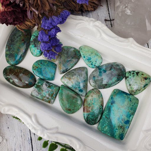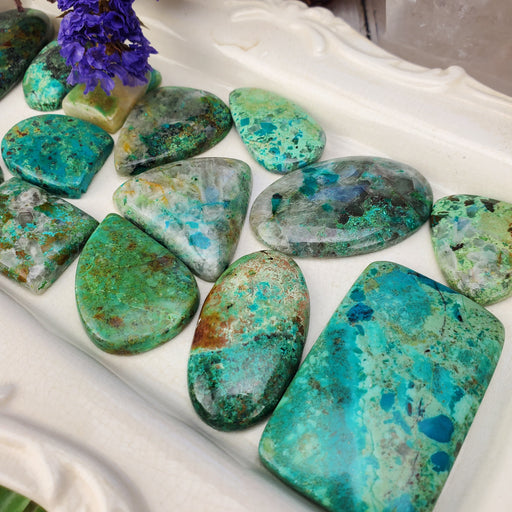 These Chrysocolla Cabochons are beautiful! Their blue green colors melt in and out of each other like watercolor. Our Chrysocolla Cabochons are so...