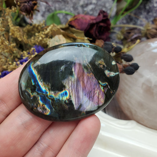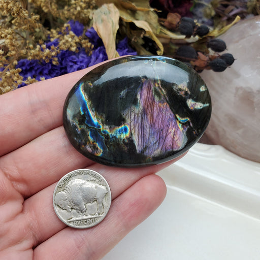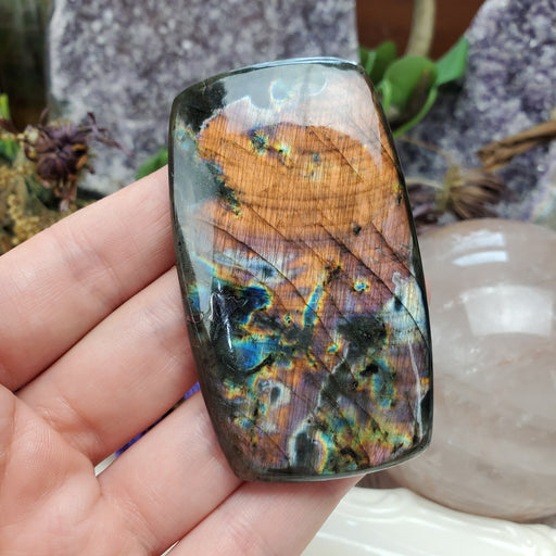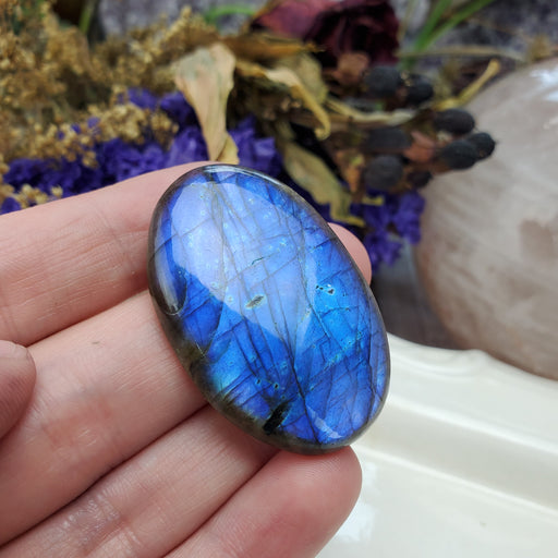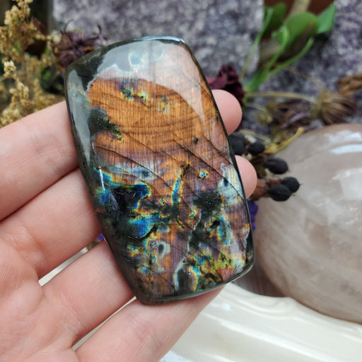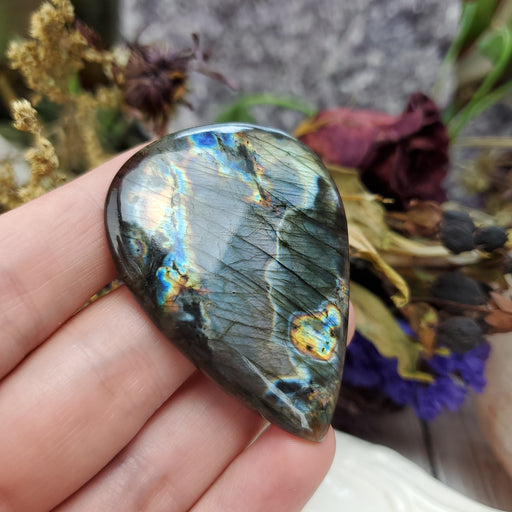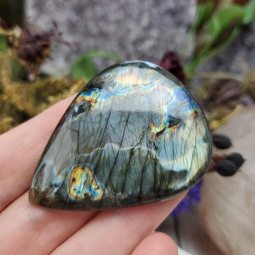 Wonder and whimsy collide in this gorgeous other worldly Labradorite Cabochon. It's multicolor face flash with cosmic purple, mystic blue, golden y...