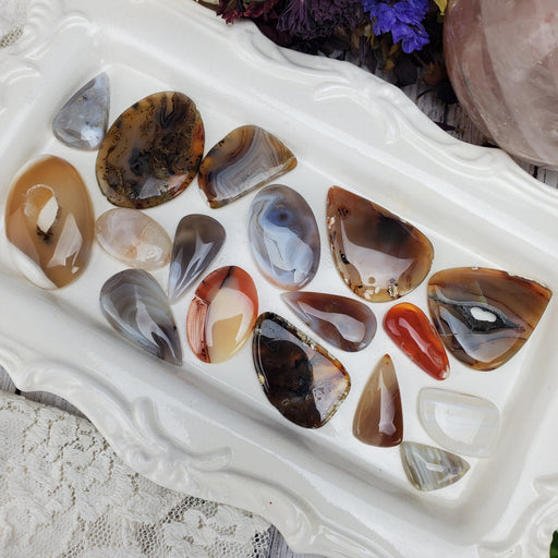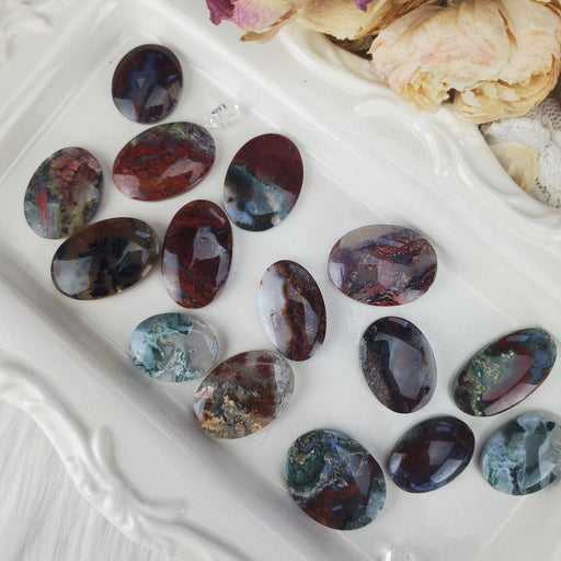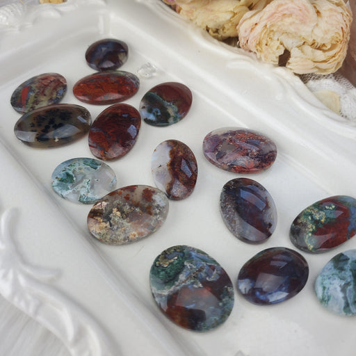 Like enchanted forests and lost lakes, these gorgeous Moss Agate Round Cabochons are perfect snapshots of mystical gardens. Our Moss Agate Round Ca...