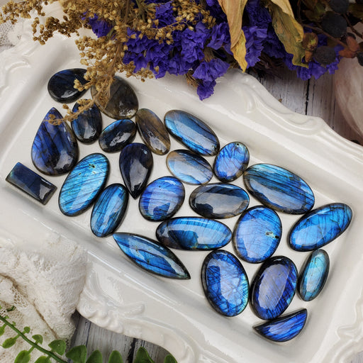 These Labradorite Cabochons are full flash with amazing color! Our Labradorite Cabochons are sold as randomly selected single pieces. They are app...