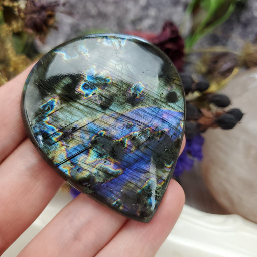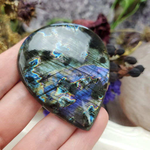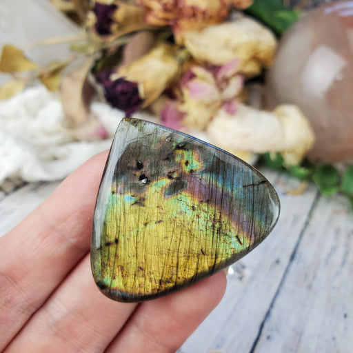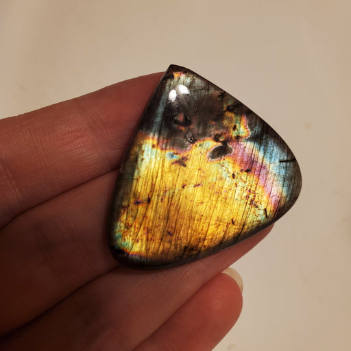 Wonder and whimsy collide in this gorgeous other worldly Labradorite Cabochon. It's multicolor face flash with cosmic purple, mystic blue, golden y...