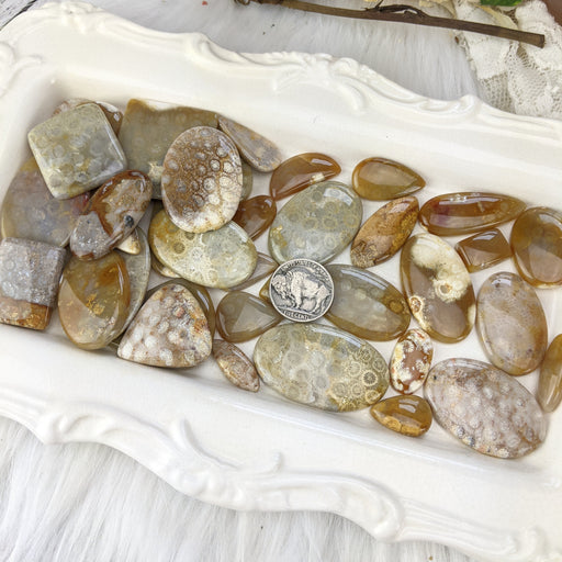 Gifts from an ancient sea, these Fossil Corral Cabochons are a beautiful tribute to prehistoric corals. Our Fossil Coral Cabochons are sold as ran...