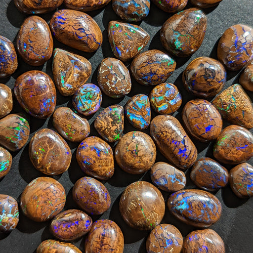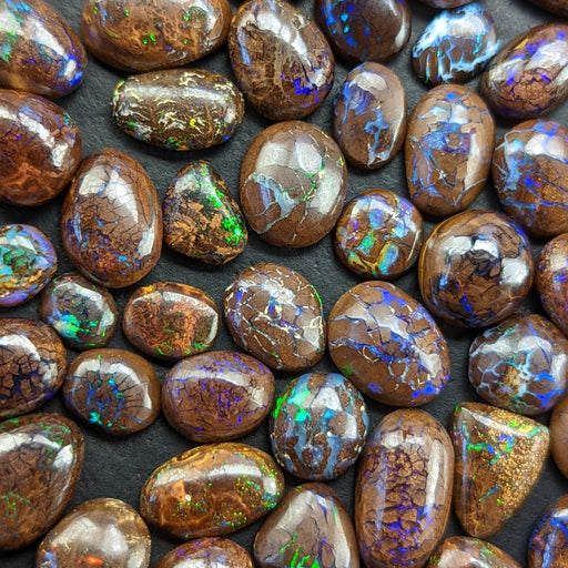 These small Boulder Opal Cabochons are brimming with beautiful fire and play. Coming direct from Winton, Australia; their intense colors shift wild...