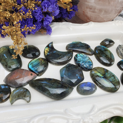 These Labradorite Coffin Cabochons are excellent quality, full of fire and flash! This size is absolutely prefect for rings! Our Small Labradorite ...