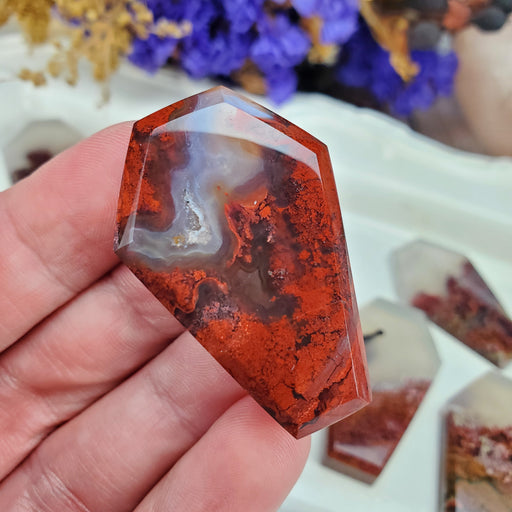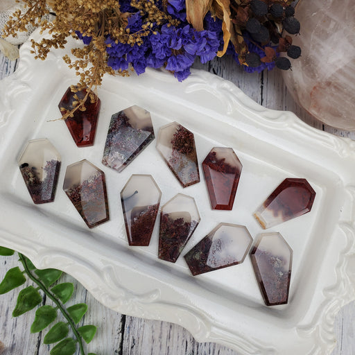 These Moss Agate Coffins are ethereal and other worldly. Their secret gardens locked, frozen, in time matched perfectly with this cut. Our Moss Ag...