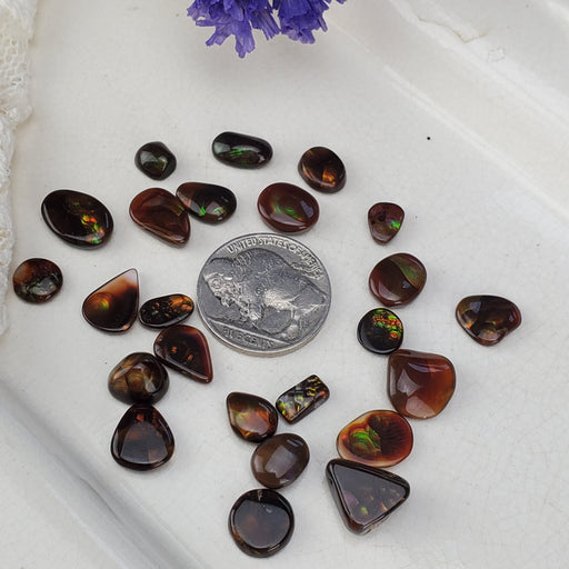 These small Boulder Opal Cabochons are brimming with beautiful fire and play. Coming direct from Winton, Australia; their intense colors shift wild...