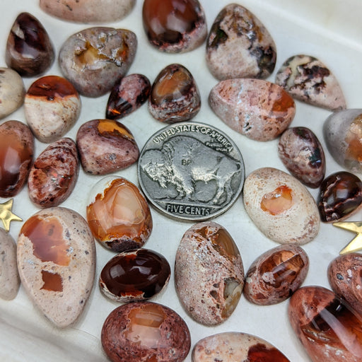 Our Mexican Red Jelly Opal Cabochons are hand cut and polished in their home state of Querétaro, Mexico. These Cabochons are come in shades of warm...