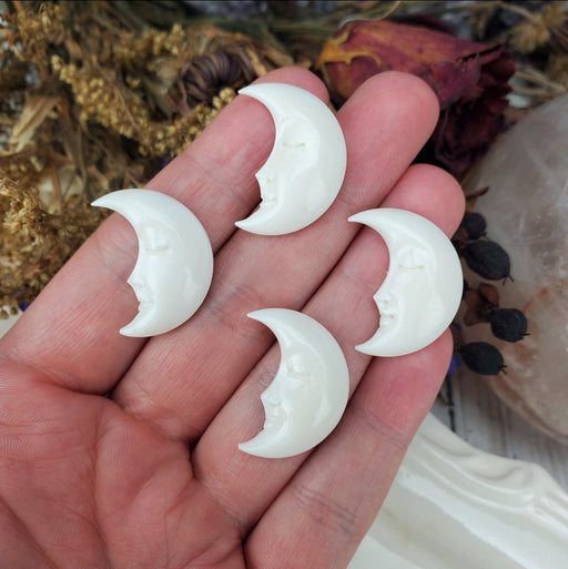 Our Crescent Moon Face Bone Carvings are hand cut and polished from all natural Cow and/or Buffalo bones. This listing has options for both left an...