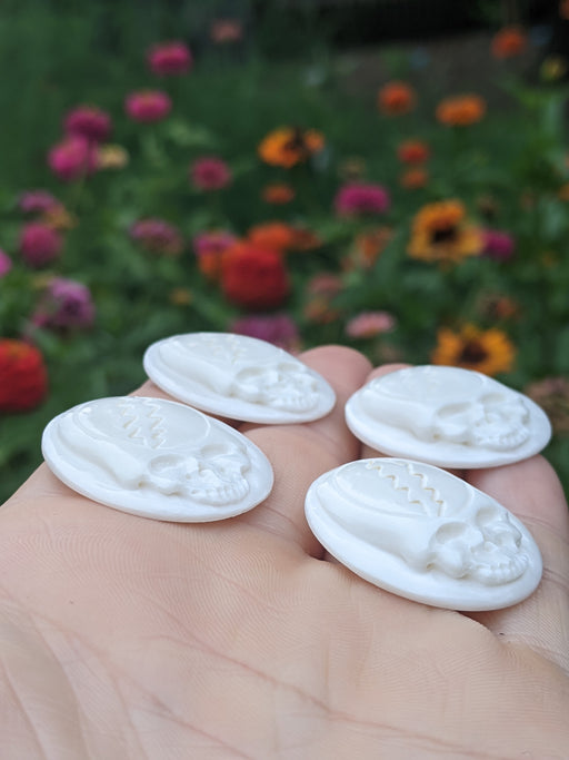 Our Bone Skulls Cabochons are hand carved and polished from all natural Cow and/or Buffalo Bone. They are drilled on the back for easy jewelry maki...