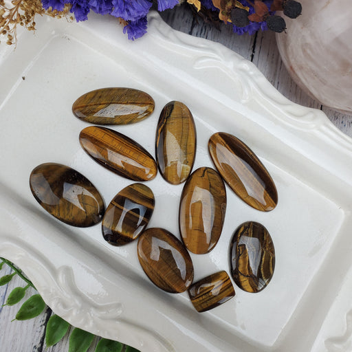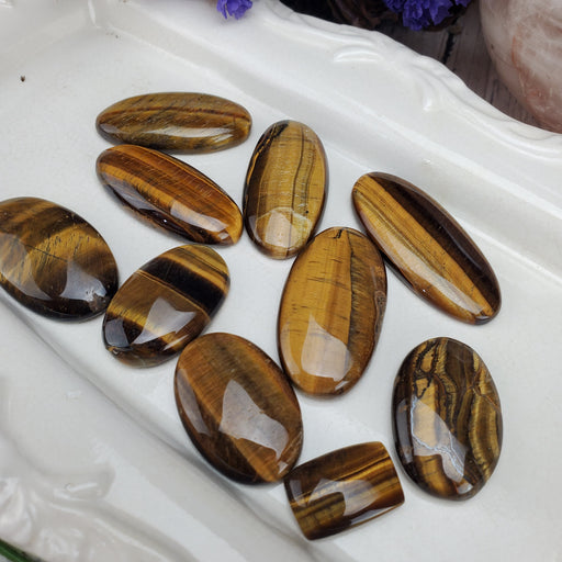 Who doesn't love the silky golden chatoyancy of Tiger's Eye. These gorgeous umber-orange Cabochons are hand-cut and polished from all natural Tiger...