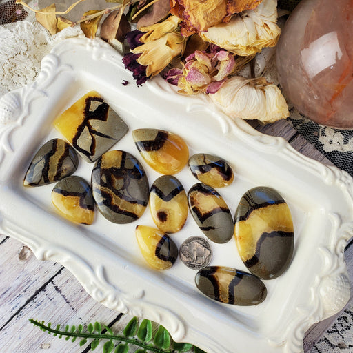Septarian is the result of ancient eruptions, that burned and bound organic matter. Once cooled it cracked under the immense pressure of our Earth....