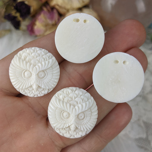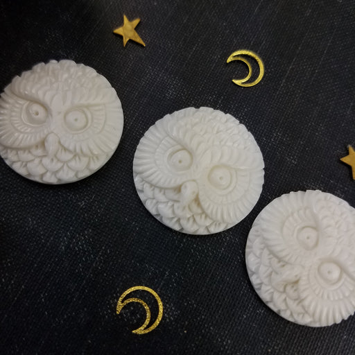 Our Round Owl Face Bone Carving Cabochons are hand cut and polished from all natural Cow and/or Buffalo bones. Dimensions for these Round Face Bone...