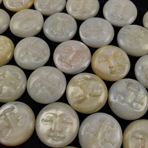 Our Round Face Mother of Pearl Carving Cabochons are hand cut and polished from all natural Nacre. The color shifts from pure white to antiqued lac...