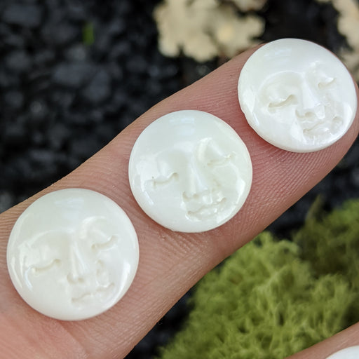 Our Mini Round Face Bone Carving Cabochons are hand cut and polished from all natural Cow and/or Buffalo bones. Dimensions for these Round Face Bon...