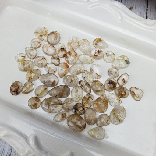 Our Green Rutilated Quartz Rose Cut Cabochons have excellent clarity with wild, branching Rutile inclusions. Our Rose-Cut Green Rutilated Quartz a...
