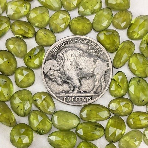 These gorgeous green Peridot rose-cuts are brilliant and bright. Their olive green tone shines like a forest after a soaking spring rain. Our Rose...