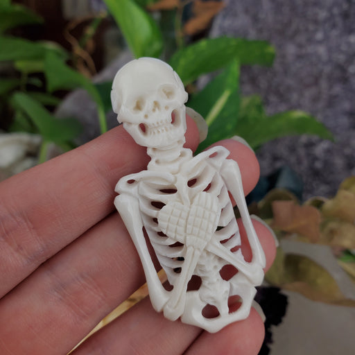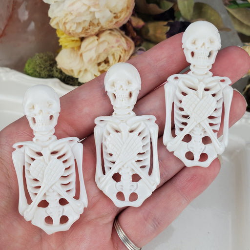 Restful or wicked, these sleepy Skeletons are ready to rise to make spooky jewelry! These Skeletons are hand carved out of cow bone. Our Carved Bo...