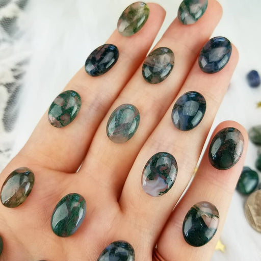 Our Moss Agate Oval Cabochons are hand cut and polished from all natural Moss Agate. Reminiscent of an Enchanted Forest, these cabochons boast dark...