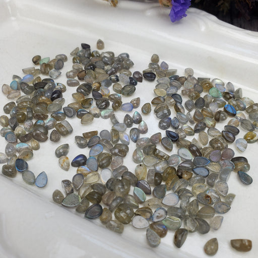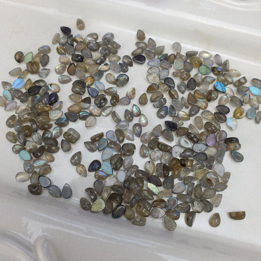 Our Labradorite Teardrop Cabochons are hand cut and polished from all natural Labradorite. These little pears are small and sweet! Perfect for acce...
