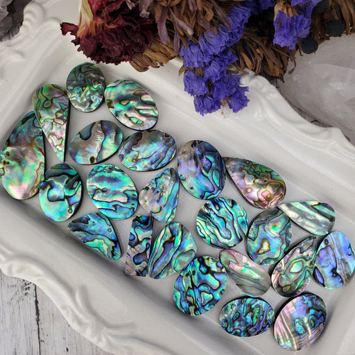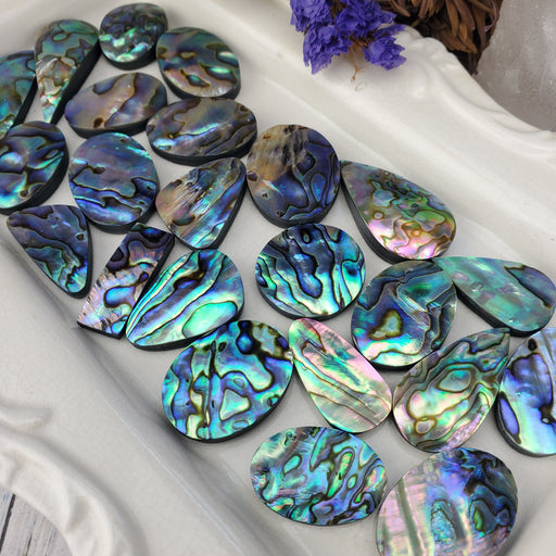Take a walk on the psychedelic side. The deep and luminous colors of these Abalone Cabochons melt beautifully into each other. Our Abalone Shell Ca...