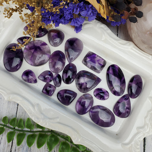 These playful Amethyst Cabochons are wonderful shades of purple; like an entire field of violets. They may feature natural and manufacturing fractu...
