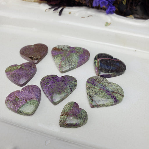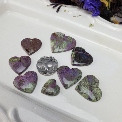 Brimming with beauty, the shimmering purple Stichite webs across green backdrops of lively serpentine green. These Atlantisite Cabochons are truly ...