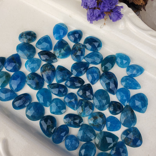 These Blue Apatite Rose Cut Cabochons are brilliantly blue, some with sneaky shimmer. Our Blue Apatite Rose Cut Cabochons are sold as randomly sel...