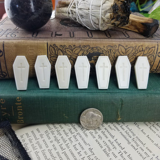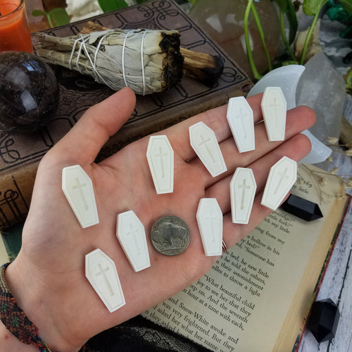 Our grim and gothic Bone carved Coffins are hand cut and polished from Cow and/or Buffalo Bone. They have been given a cross design that is excelle...