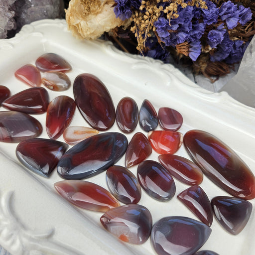 These Botswana Agate are beautifully banded, with deep red and orange tones blending with the darker agate grey. Our Botswana Agate Cabochons are ...