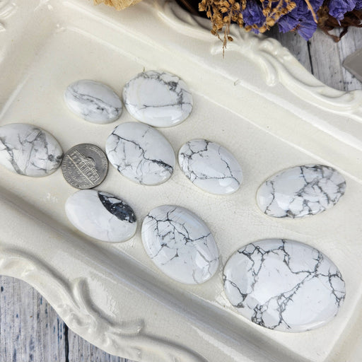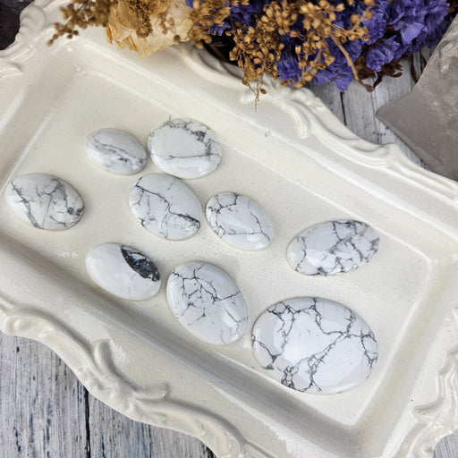 These Howlite Cabochon's pale white face is beautifully marbled by smokey grey and black veins! Our Howlite Cabochons are sold as randomly selecte...