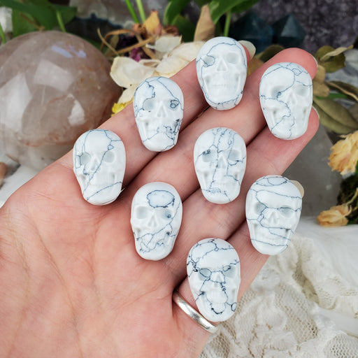 Our Howlite Skull Carving Cabochons are hand cut and polished. Their pale, ghostly appearance makes for the perfect skull! These Howlite Skull Carv...