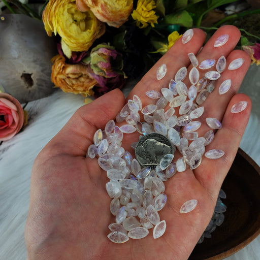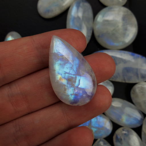 These Moonstone are beautiful, with bright dancing colors! Our Moonstone Cabochons are sold in 100g bags. Each bag contains roughly 20 - 25 pieces....