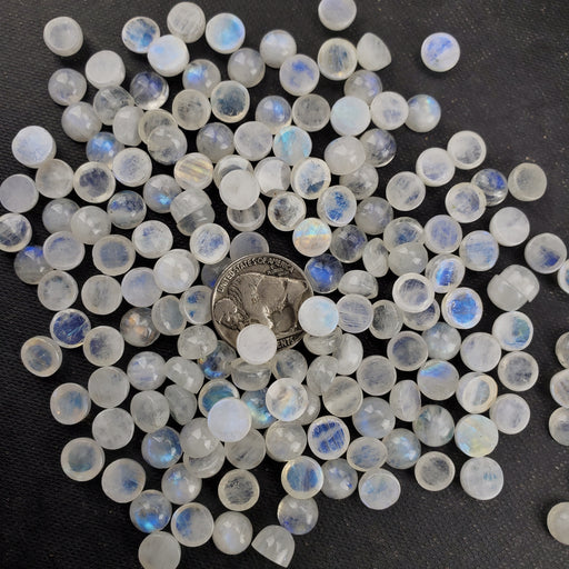 Our Moonstone Round Cabochons are hand cut and polished from all natural Moonstone. These 5mm Moonstone Round Cabochons are sold as randomly selec...