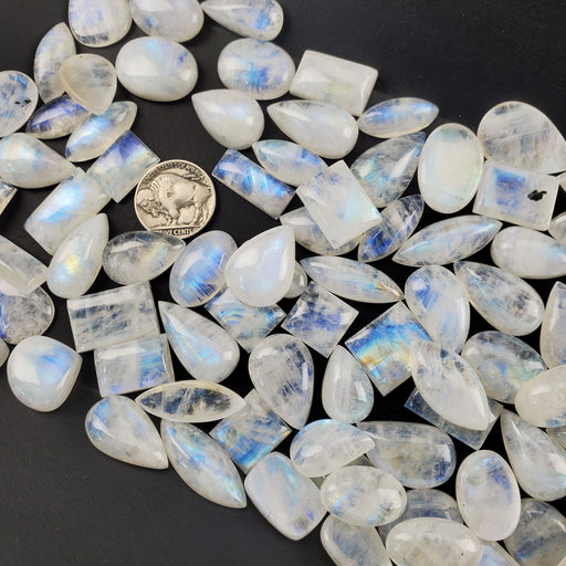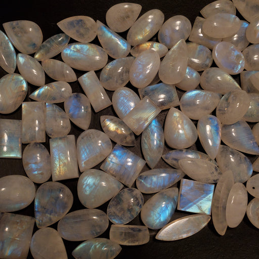 This listing is for 1/2 kilo lot of Moonstone Cabochons. The 1/2 kilo has roughly 140 - 150 pieces. Click here to see all Moonstone