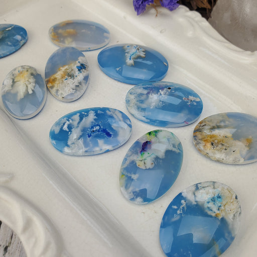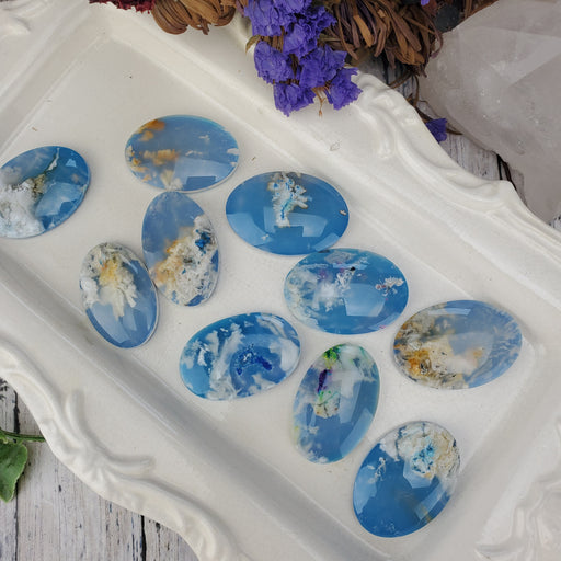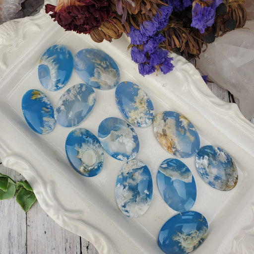 These Plume Agate and Resin Doublets remind me of bright blue skies and wispy cream colored clouds on a summer day. Our Summer Sky Cabochons are s...