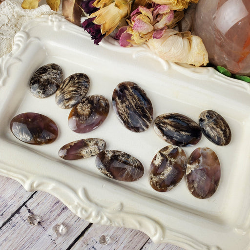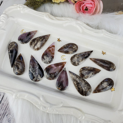 These aptly named cabochons are like billowing puffs of smoke; forests set aflame or ornate displays of soft feathers frozen in time. Our Plume Aga...