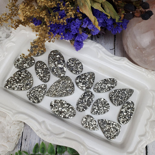 Our Pyrite Druzy Cabochons are hand cut and polished from all natural Peruvian Pyrite. These Pyrite Druzy Cabochons are sold as randomly selected ...
